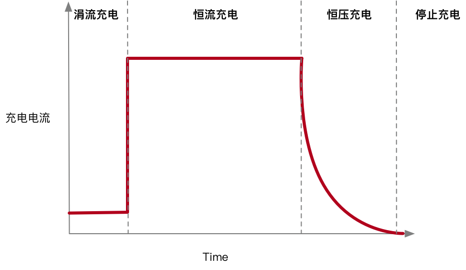 2. 恒流充電:涓流充電完畢,電池充電芯片會增加電流的輸出,并恒定該電流對電流持續充電。電池充電的大部分時間都處于恒流充電階段。