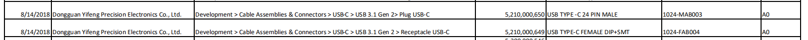 從USB-IF協會的最新TID名單中我們可以看到,目前意豐精密已有USB 3.1 Gen 2 USB‐C連接器公頭(TID:5210000650)和一款USB 3.1 Gen 2 USB-C母座(TID:5210000649)取得協會TID號,相信在不久之后將正式拿到USB-IF協會的認證。