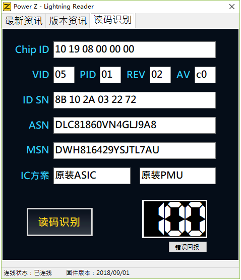 6、只有當“ASIC”和“PMU”顯示的信息全部為“原裝”時才能證明Lightning頭是正版, 任何一項顯示其他信息(比如顯示“平仿”、“臺系”等)均不能稱為正版產品;