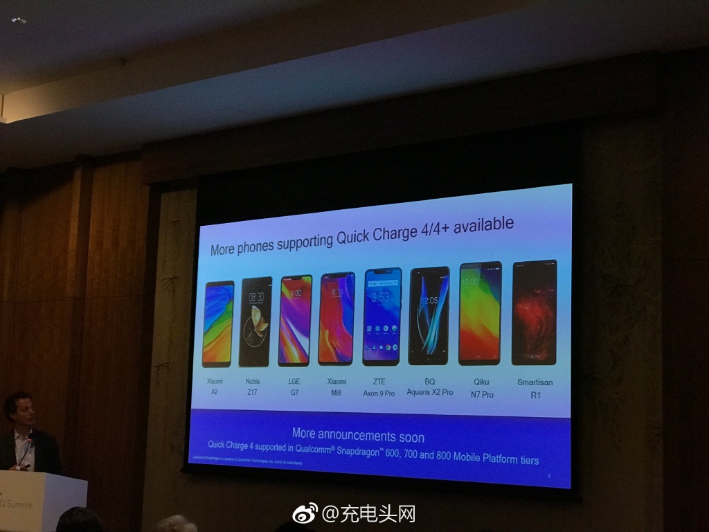 在近日舉辦的4G/5G峰會(huì)上,高通公布最新QC4/4+認(rèn)證手機(jī),8款上榜。包含了小米A2、Nubia Z17、LGE G7、小米 Mi8、ZTE Axon 9 Pro、BQ Aquaris X2 Pro、Qiku N7 Pro、錘子R1。其中6款為國產(chǎn)手機(jī),占據(jù)多數(shù)比例。 此外,目前高通QC4/4+快充生態(tài)鏈中,授權(quán)芯片已達(dá)數(shù)十款,已經(jīng)開始有不少采用這些芯片的充電器投入市場。