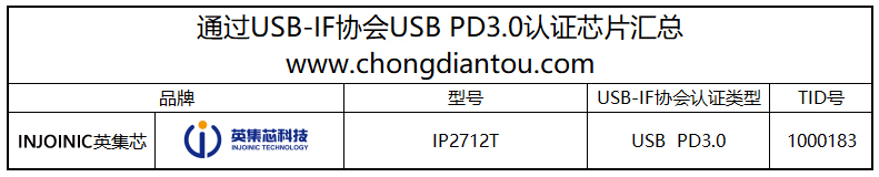 目前英集芯IP2712T已經(jīng)順利通過了USB PD3.0認(rèn)證(TID號(hào)為1000183)。