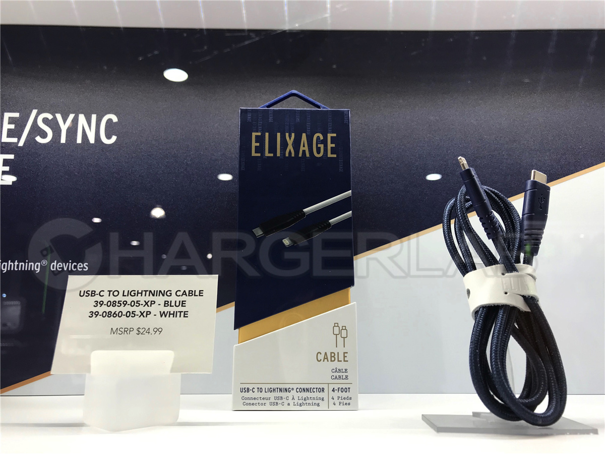 據ChargerLAB報道,美國手機配件品牌ELIXAGE在CES展會上展出了兩款編織數據線,分別是USB-C to USB-C數據線、USB-C to Lightning數據線,其中USB-C to Lightning數據線通過了蘋果的MFi認證。