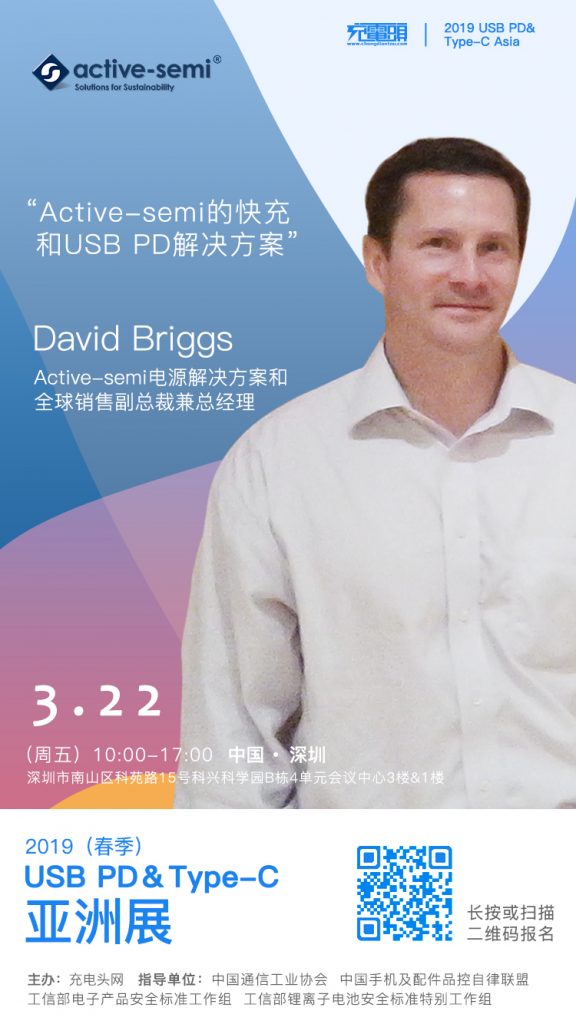 Active-semi電源解決方案和全球銷售副總裁兼總經(jīng)理 David Briggs,本次峰會的演講主題為《Active-semi的快充和USB PD解決方案》。David Briggs擁有24年半導(dǎo)體行業(yè)從業(yè)經(jīng)驗(yàn),工作內(nèi)容涵蓋從設(shè)計(jì)到全球業(yè)務(wù)管理。在TI工作的20年中,David擔(dān)任過各種業(yè)務(wù)和技術(shù)職務(wù),并被選為杰出工程師。他專注于電源管理和無線基礎(chǔ)設(shè)施領(lǐng)域,為汽車和電源管理應(yīng)用提供解決方案;通過充分理解客戶需求,整合公司資源,實(shí)現(xiàn)客戶和TI的雙贏。