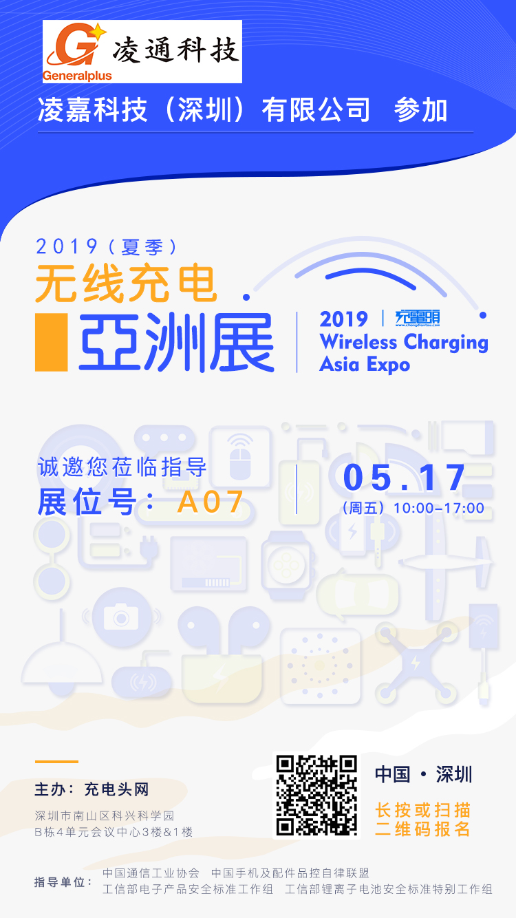 凌通科技將在5月17日出席參加:2019(夏季)無線充電亞洲展,展臺設在A07,歡迎大家前來咨詢!