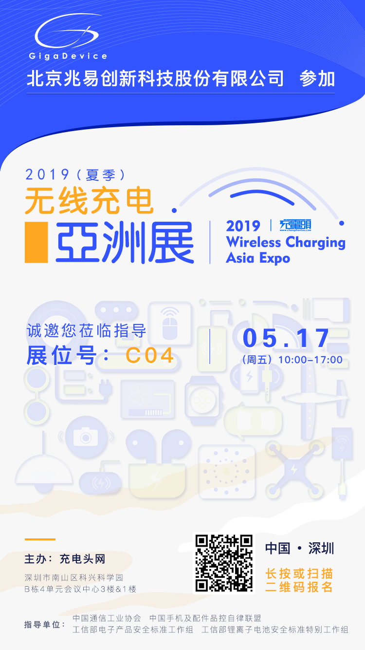 兆易創(chuàng)新GD32 MCU將在5月17日出席參加:2019(夏季)無線充電亞洲展,展臺設(shè)在C04,歡迎大家前來咨詢!
