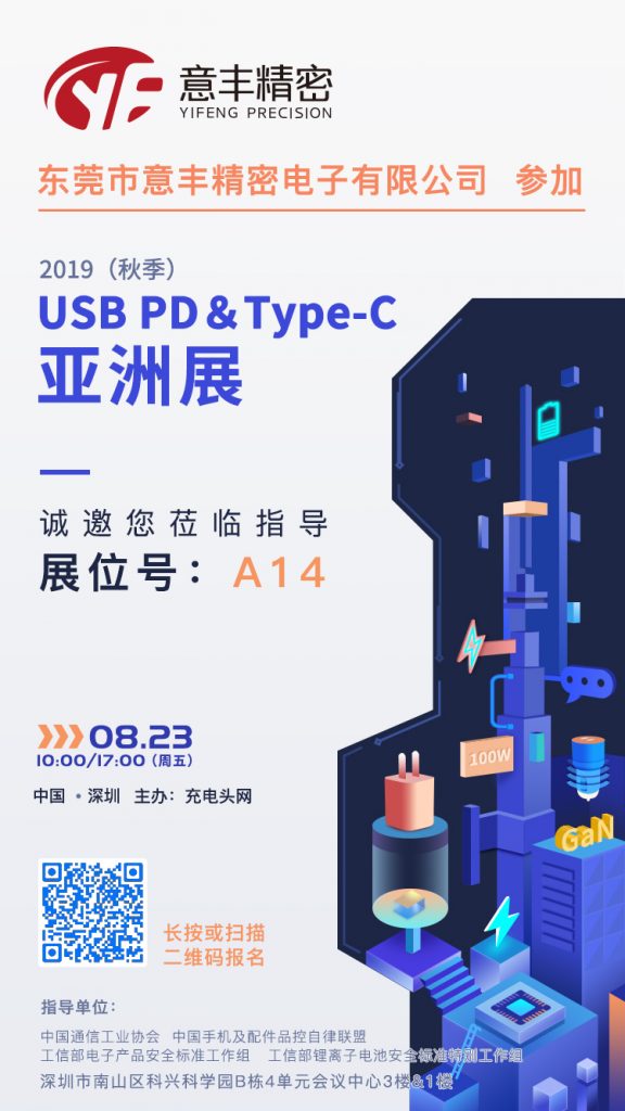 8月23日,意豐精密將參加2019(秋季)USB PD&Type-C亞洲展,展位設在A14,需要了解USB-C、USB-A、Micro USB等連接器方案的觀眾可在展會當天前往A14展位詳細交流。
