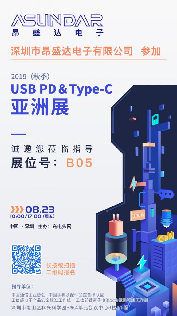 昂盛達(dá)電子將于8月23日參加2019(秋季)USB PD&Type-C亞洲展,展位設(shè)在B05,需要了解USB PD快充測(cè)試設(shè)備、無(wú)線充電測(cè)試設(shè)備的觀眾可在展會(huì)當(dāng)天前往B05展位詳細(xì)交流。
