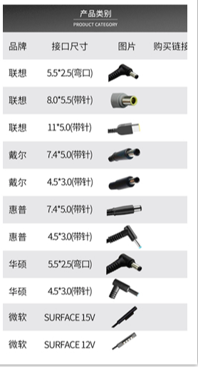 ? 支持多種傳統筆記本充電接口,電壓可配,兼容性強