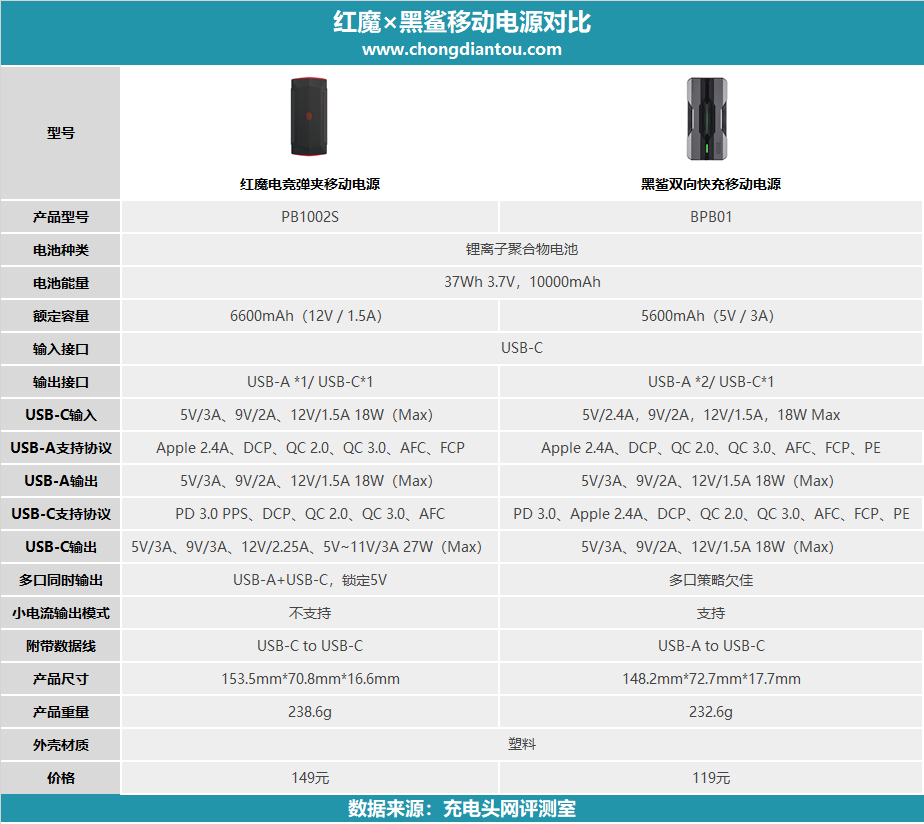 價格方面,紅魔移動電源為149元,黑鯊移動電源為119元。