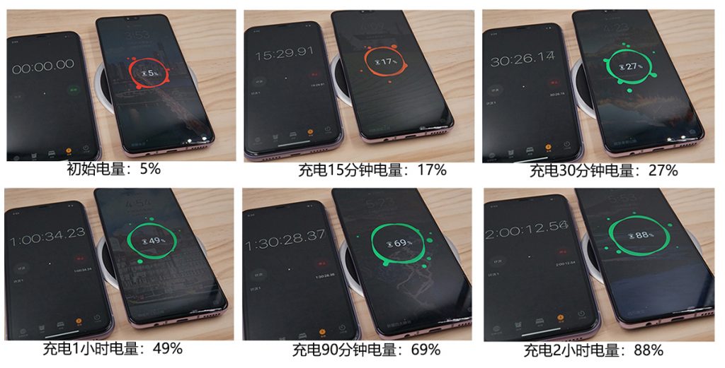 官方資料顯示,這款無線充電器支持三星10W 、蘋果7.5W、華為10W私有協議、小米EPP 10W以及EPP 15W協議。在充電速度方面,小編使用華為Mate 30做了相關的體驗測試。