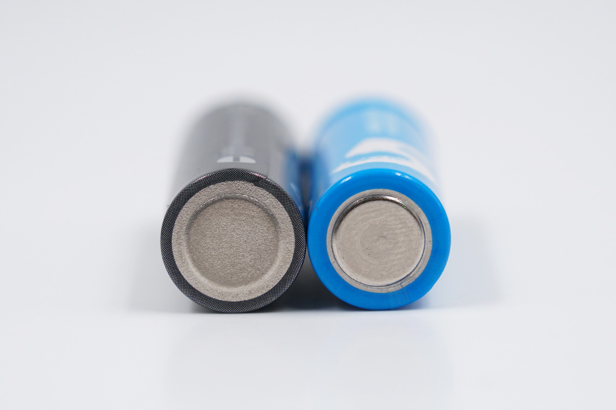 兩款電池正極特寫,二者看上去相同。