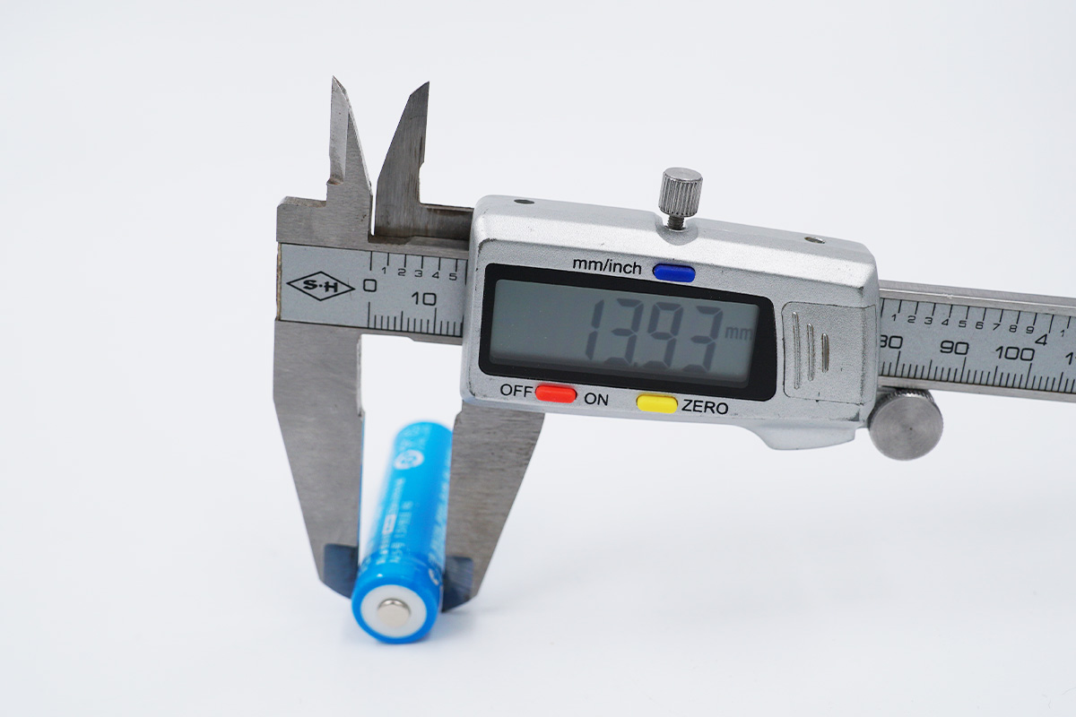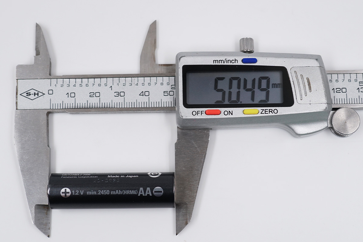 使用卡尺實測愛樂普鎳氫的長度約為50mm。