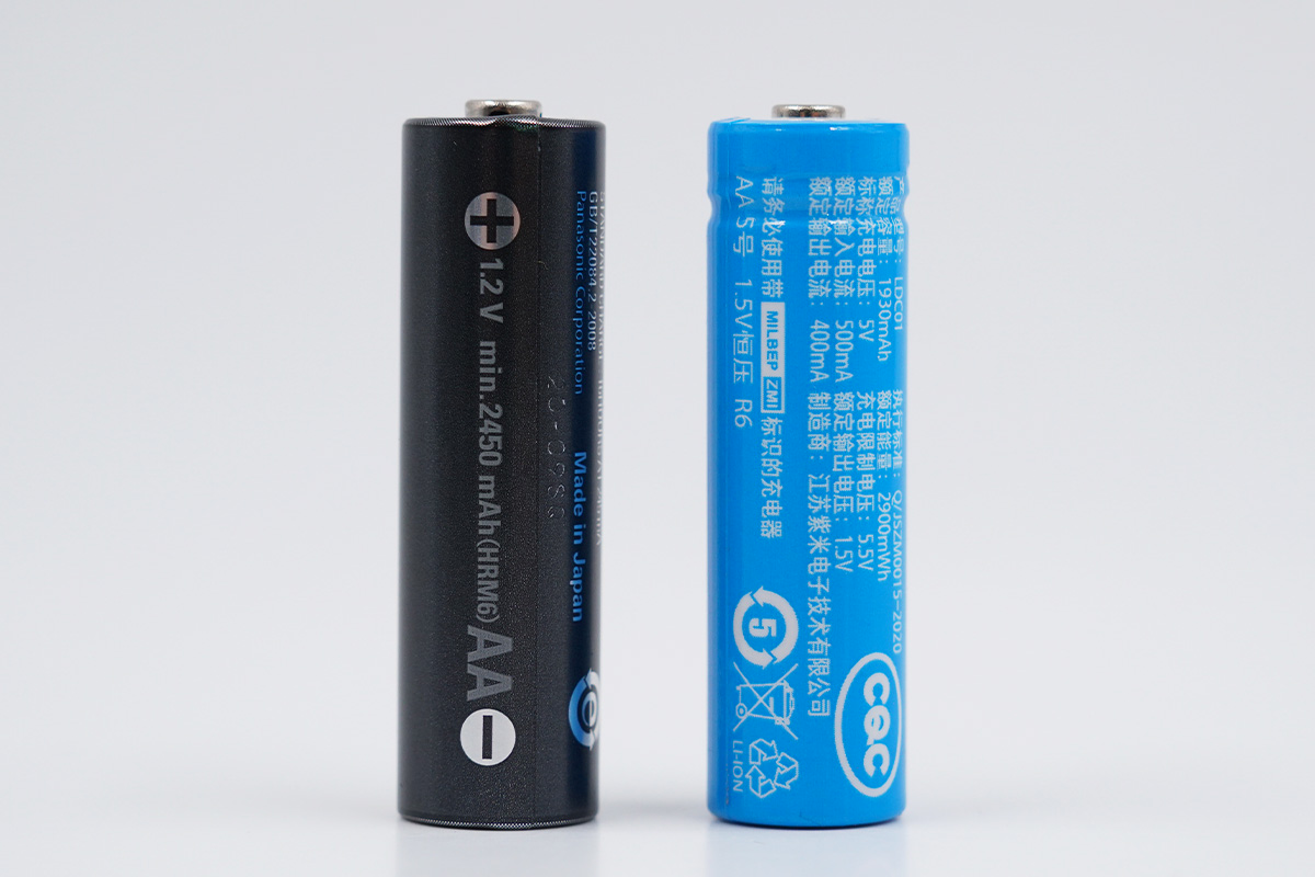 上面是小編拿到的兩款AA電池,雖都為AA電池,但二者卻有著質的不同。左邊是來自松下愛樂普的鎳氫電池充電套裝,也是一個知名的老品牌了。右側是3C配件品牌小米生態鏈企業紫米推出的AA鋰電池充電套裝,也是目前熱度非常高的產品。
