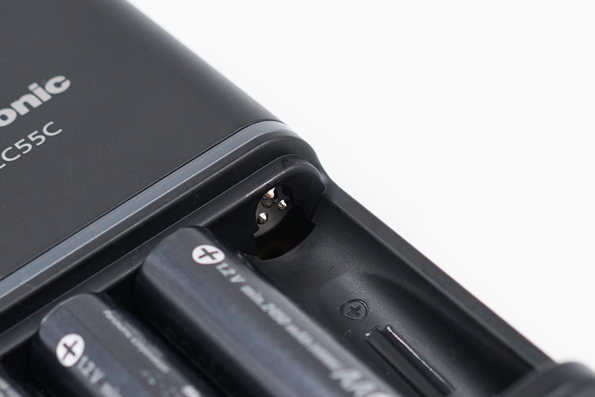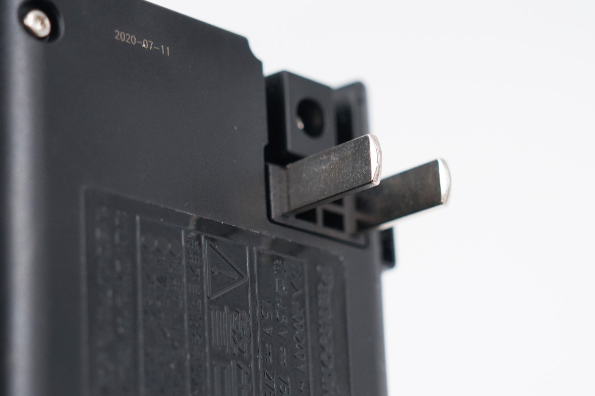 松下愛樂普的這款充電器采用的是一體式AC插腳設計,可以直接搭配插座為電池充電,而且插腳的位置偏向一側,如果搭配插座使用得體的話可以避免霸插座的現象了。