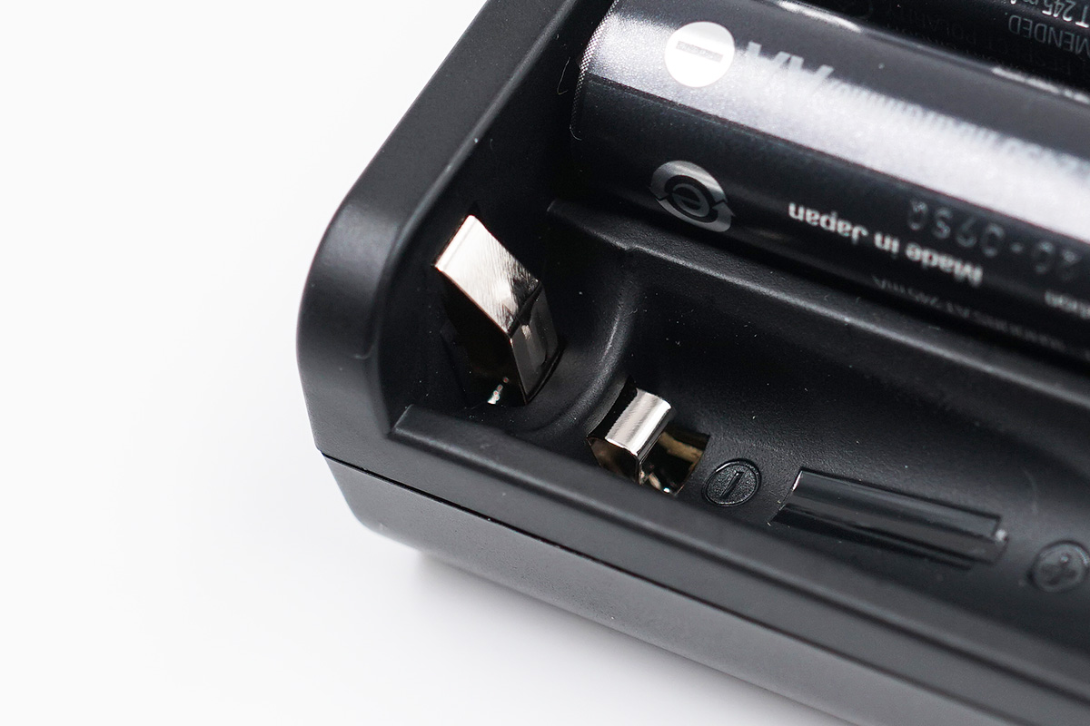 電池卡位負極特寫,上面兩個彈片方便AA電池和AAA電池使用。