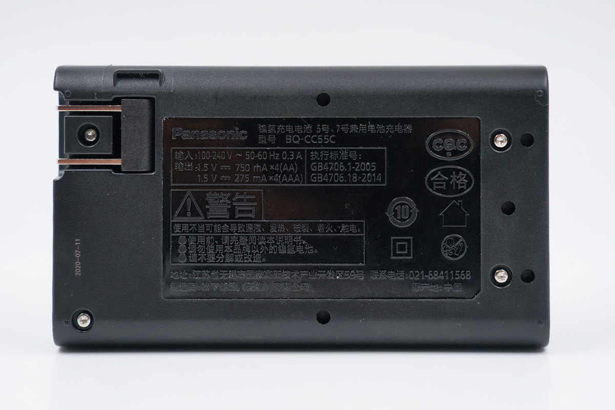 看完了主角電池的介紹,下面來看一下配備的充電器部分,松下愛樂普的鎳氫電池充電器整體呈一體式的外觀設計,整體外形較大。