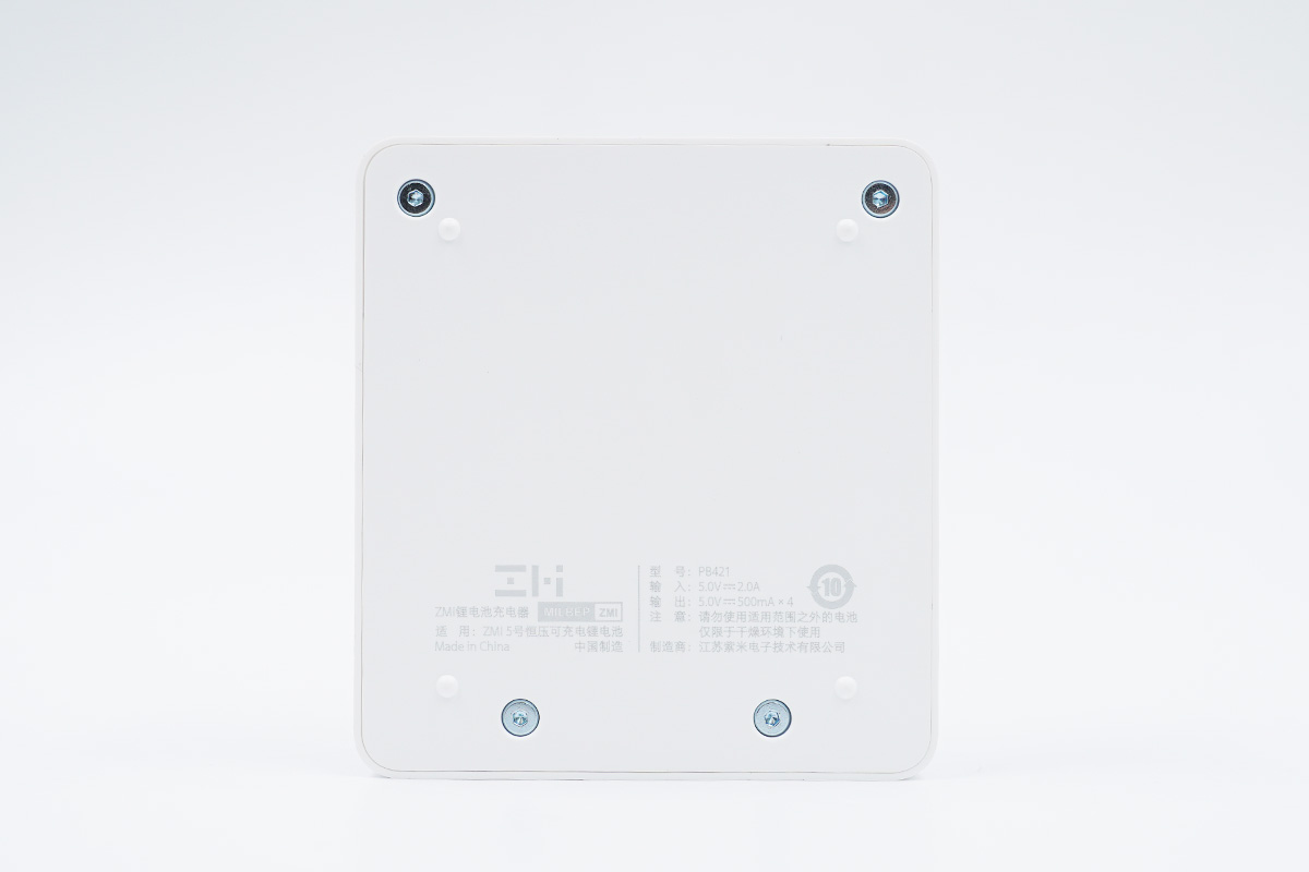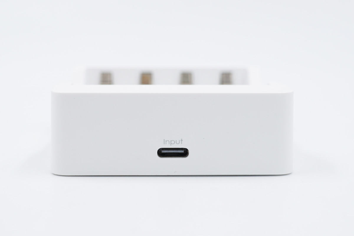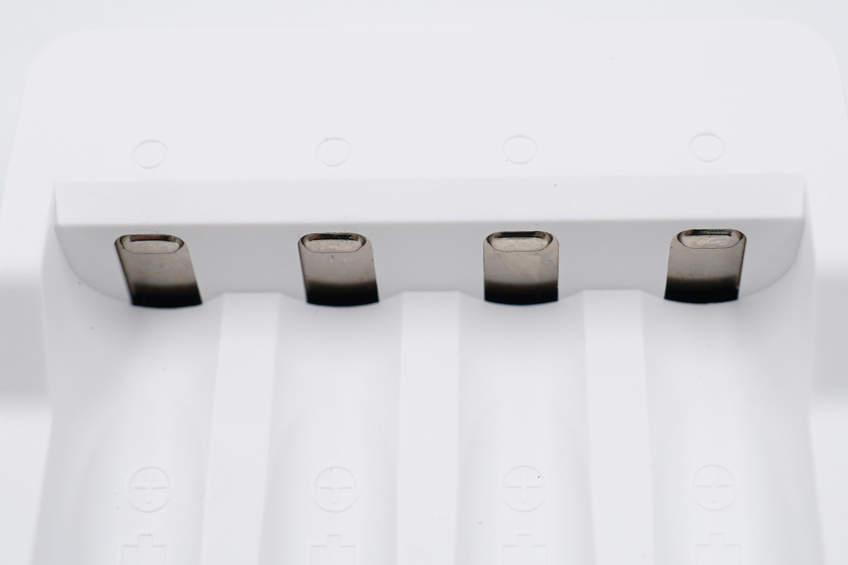 先來看看充電器,白色的外觀,上下邊界處菱角較為分明,四周的邊角較為圓潤,中間是4個充電卡位。