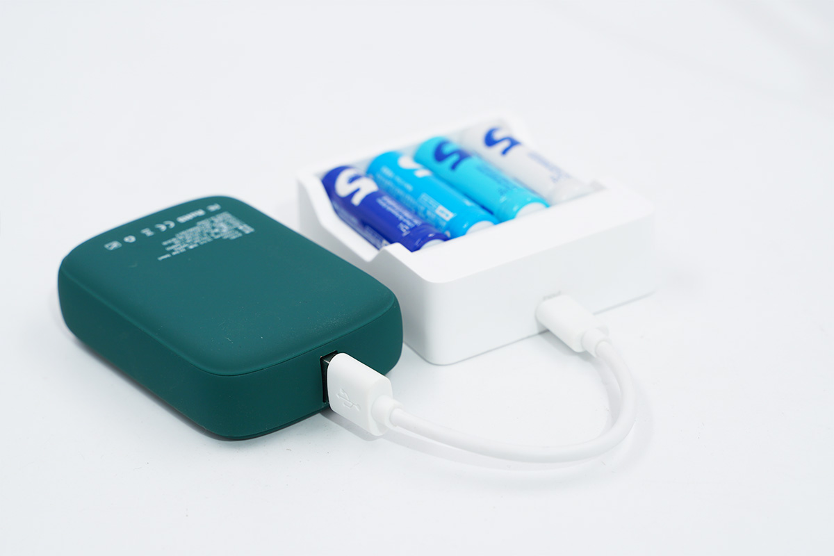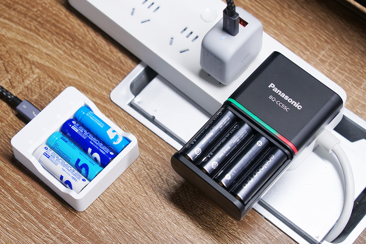 對于松下愛樂普的鎳氫電池來說,為自身充電只有通過自帶的AC插腳為自身供電,所以充電的場景十分有限。而紫米的鋰電池在充電方式上明顯要更加的自由,因為紫米1.5V AA鋰電池的充電器配備了一個USB-C輸入接口,所以可以使用市面上常規的USB-C線材搭配充電器為自身充電。