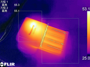 在恒溫箱內使用自帶的充電器為鎳氫電池充電,半小時采集到溫度在55℃左右。