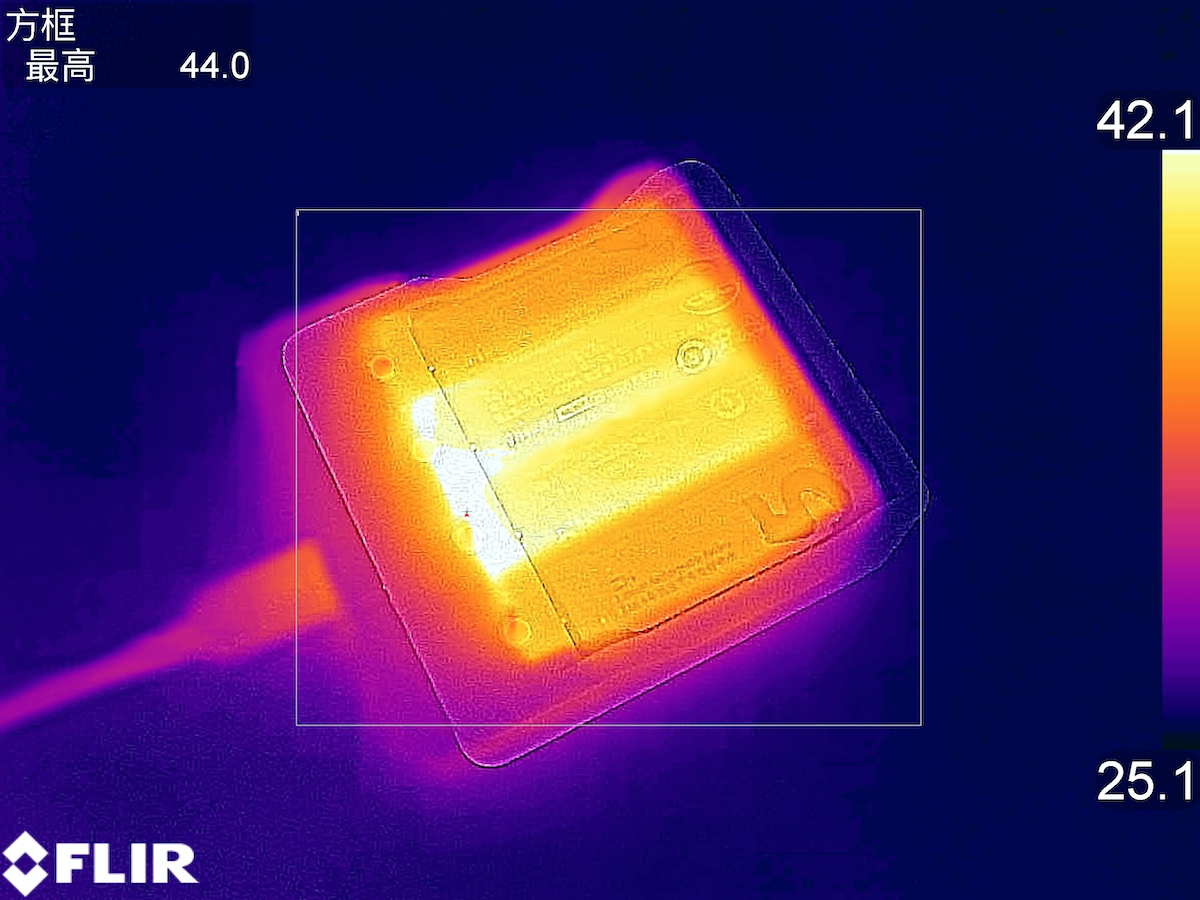 1小時后,采集到溫度為44℃。在以上的測試結束之后結論已經很明顯了,在自充電的過程中明顯鎳氫電池要比AA鋰電池更熱。