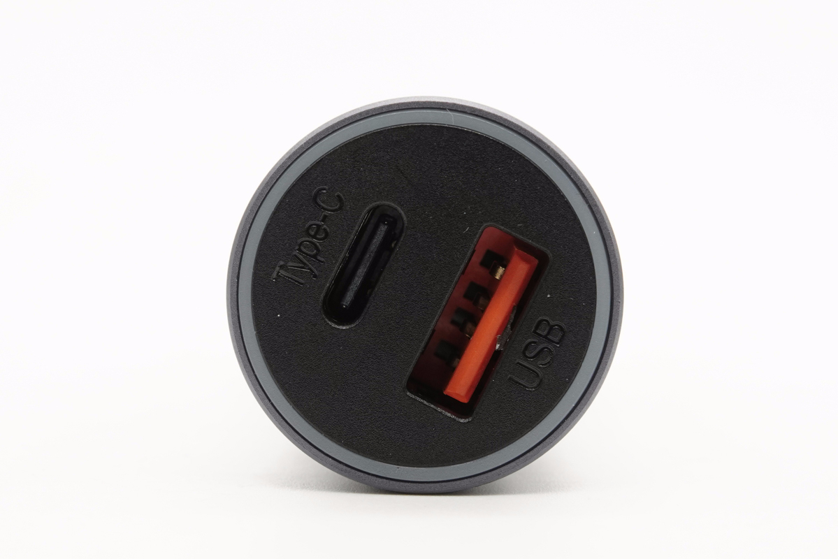 輸出頂面設有1A1C接口,橘紅色和黑色膠芯,邊緣是一圈LED導光圈。