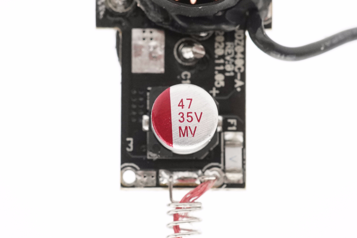 輸入濾波固態電容特寫,規格為35V 47μF。