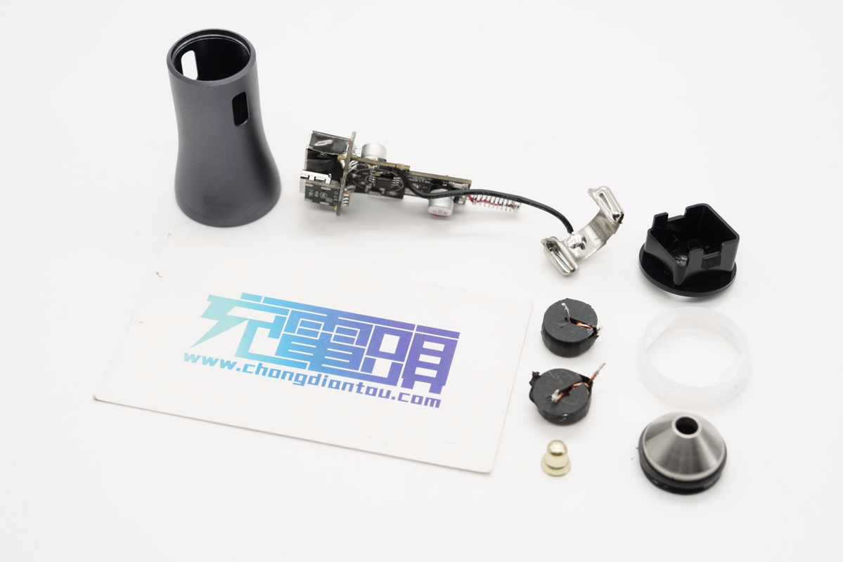 正極彈簧內焊接一根紅色導線降低電阻,輸入端有一顆白色貼片保險絲。