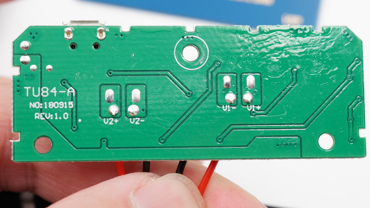 另一端特寫,兩顆電池鎳片點焊連接,2串結構。