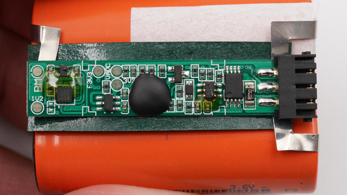 另外電池拆開發現內置兩顆NCR18500電芯以及保護電路板,鋰電池保護芯片采用宏康HY2120,此外電芯和電路板之間有青稞紙隔離絕緣。