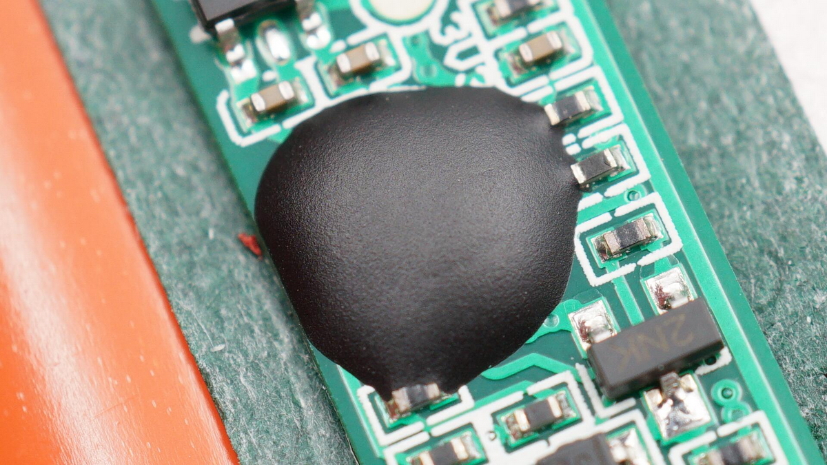 工字電感特寫,用于升壓,左側Micro-USB插座打膠加固