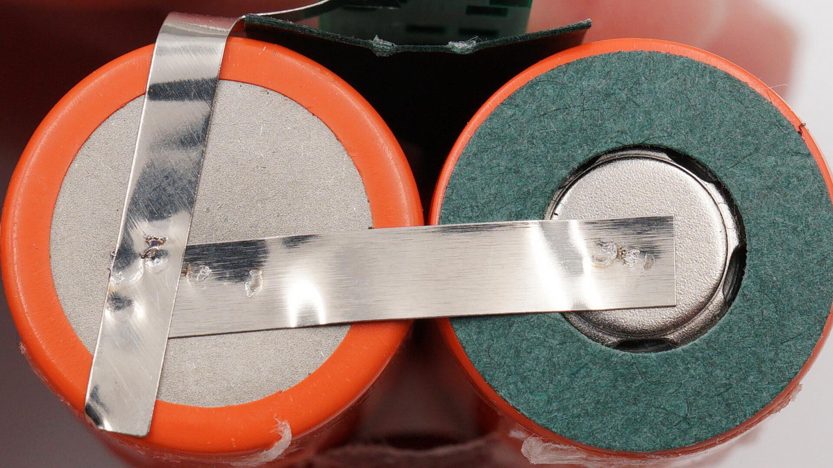 電池一端特寫,鎳片點焊,電池正極貼有青稞絕緣紙。