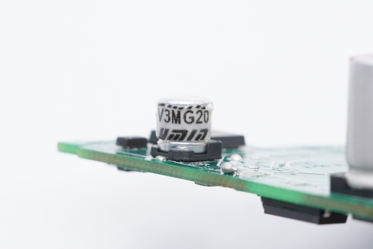 輸入端一覽,主板左側(cè)設(shè)有三顆高壓濾波電解電容。
