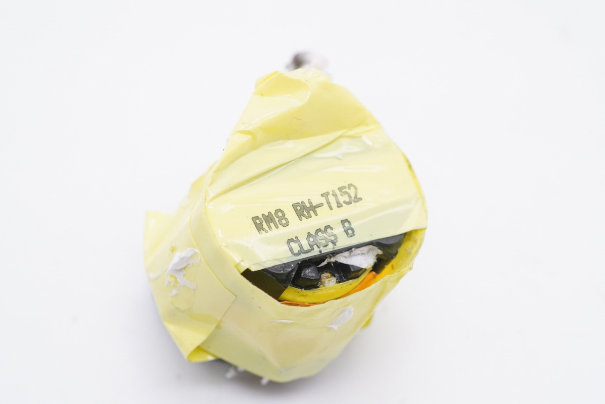 變壓器使用絕緣膠帶包裹,頂部噴碼有信息。