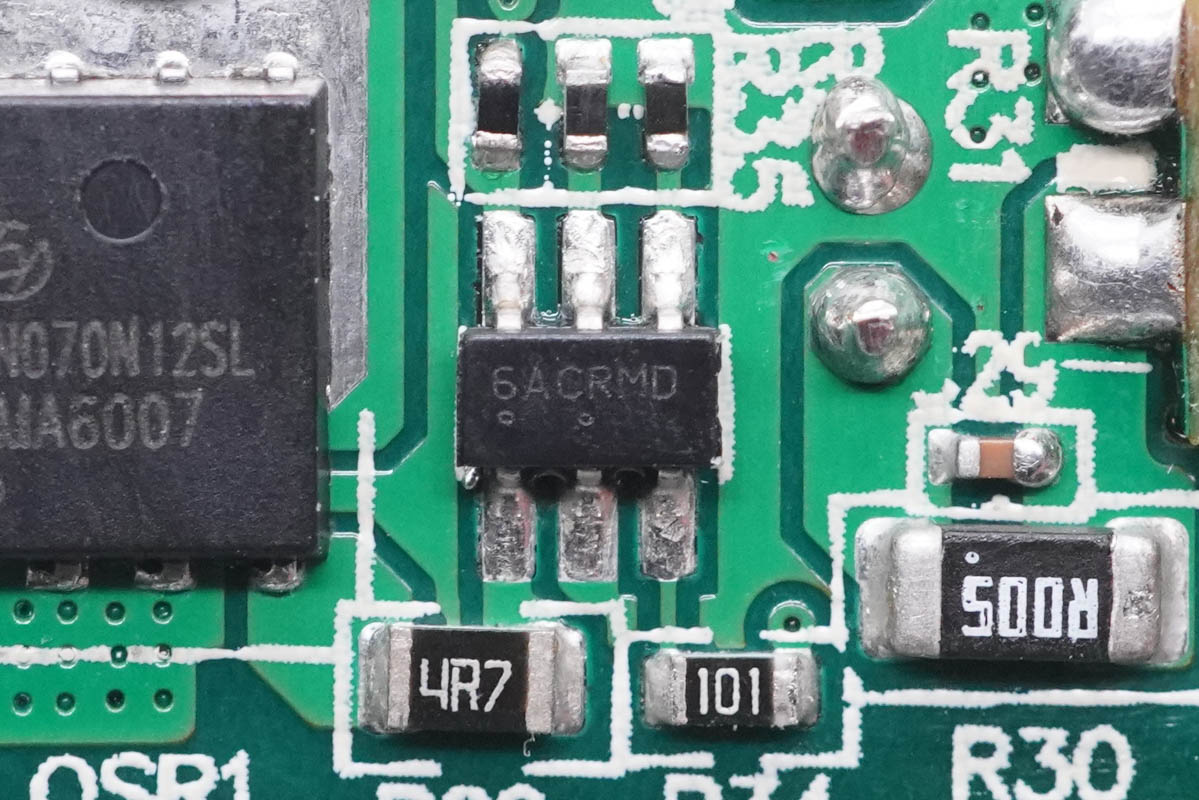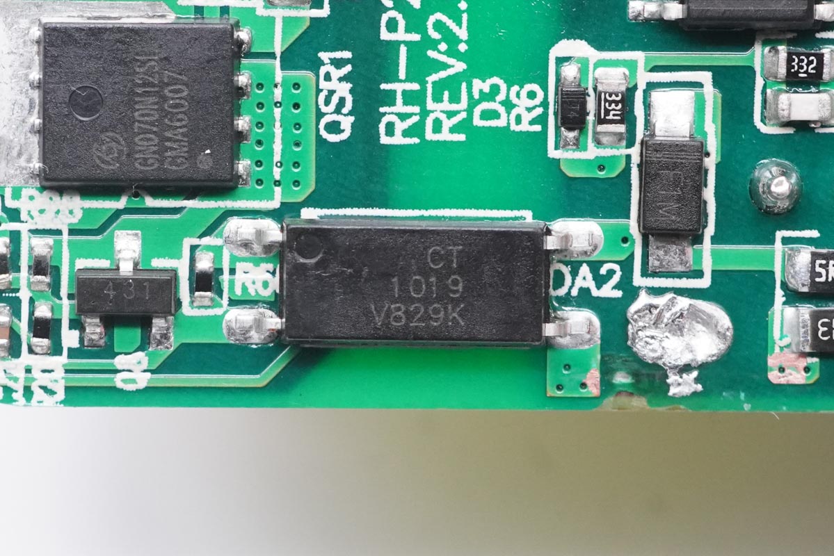 PCB板背面一覽,光耦橫跨在初次級之間,分界明顯。