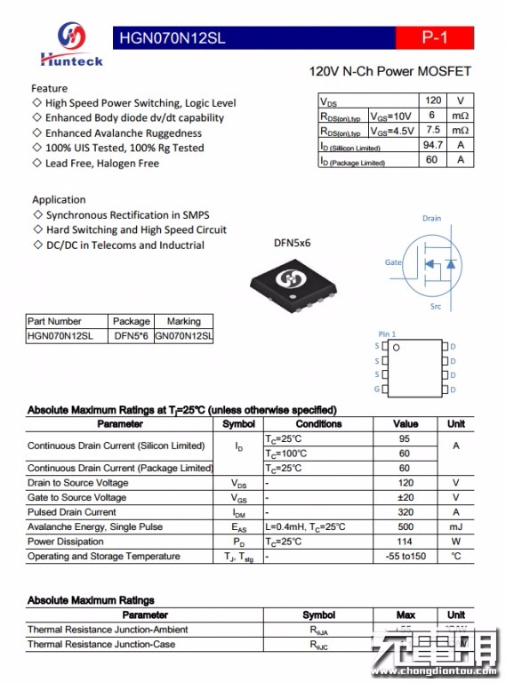 恒泰柯HGN070N12SL資料信息。