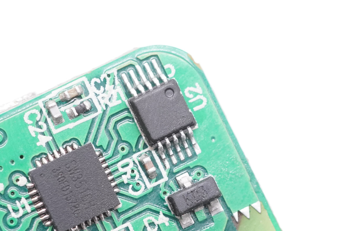 USB-A母座所在小板背面設(shè)有降壓協(xié)議IC以及對應(yīng)的MOS管。