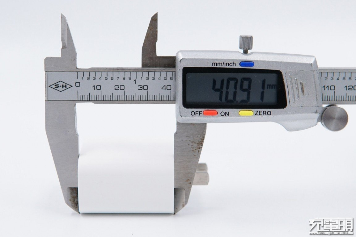 使用卡尺測量充電器寬度為41.73mm。