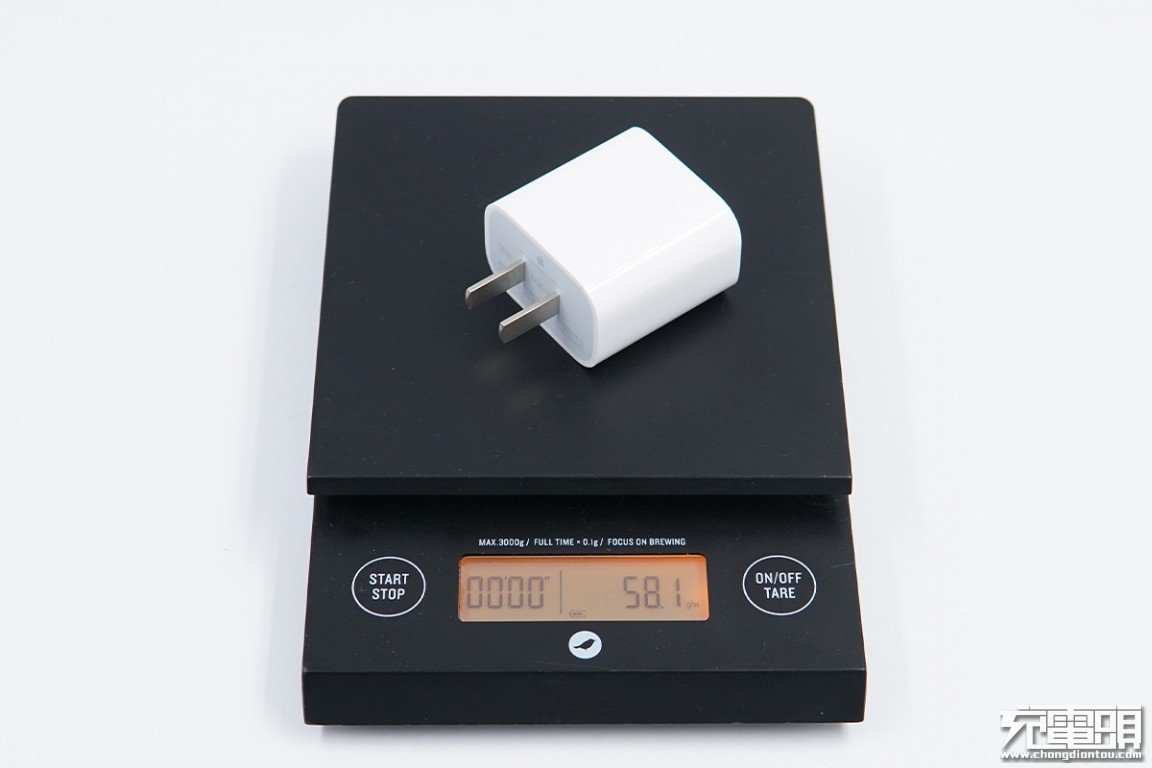 蘋果20W PD快充凈重約為58.1g。