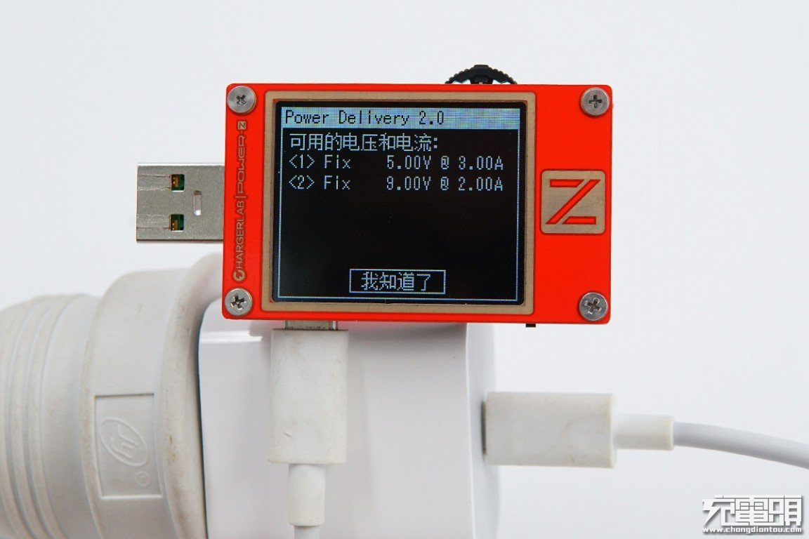 使用POWER-Z KT002讀取蘋果20W PD快充的快充協議,充電器僅支持PD快充協議。