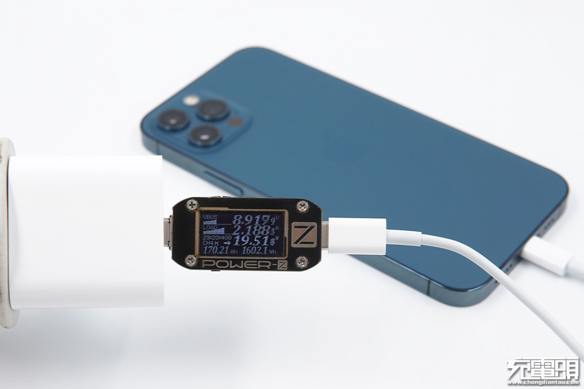 使用蘋果20W PD充電器為iPhone 12 Pro充電,功率為8.91V 2.18A 19.51W。