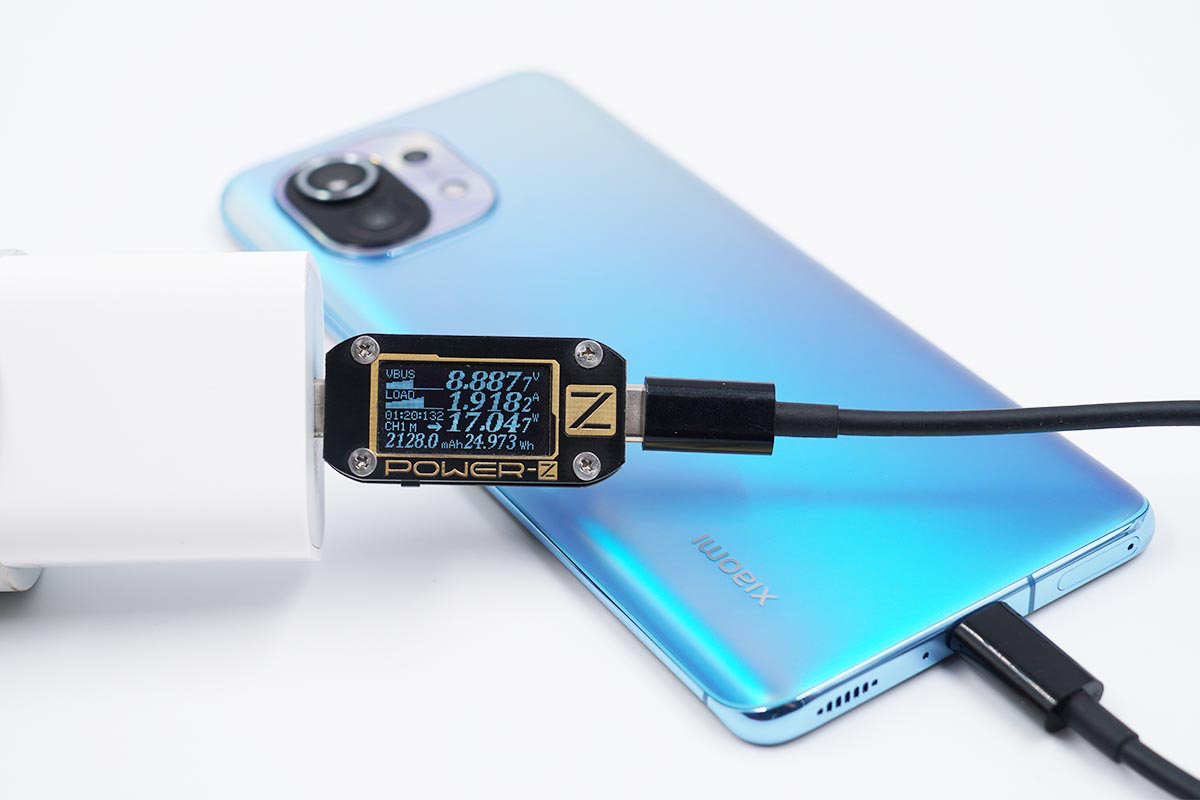 使用蘋果20W PD充電器為小米11充電,功率為8.88V 1.91A 17.04W。