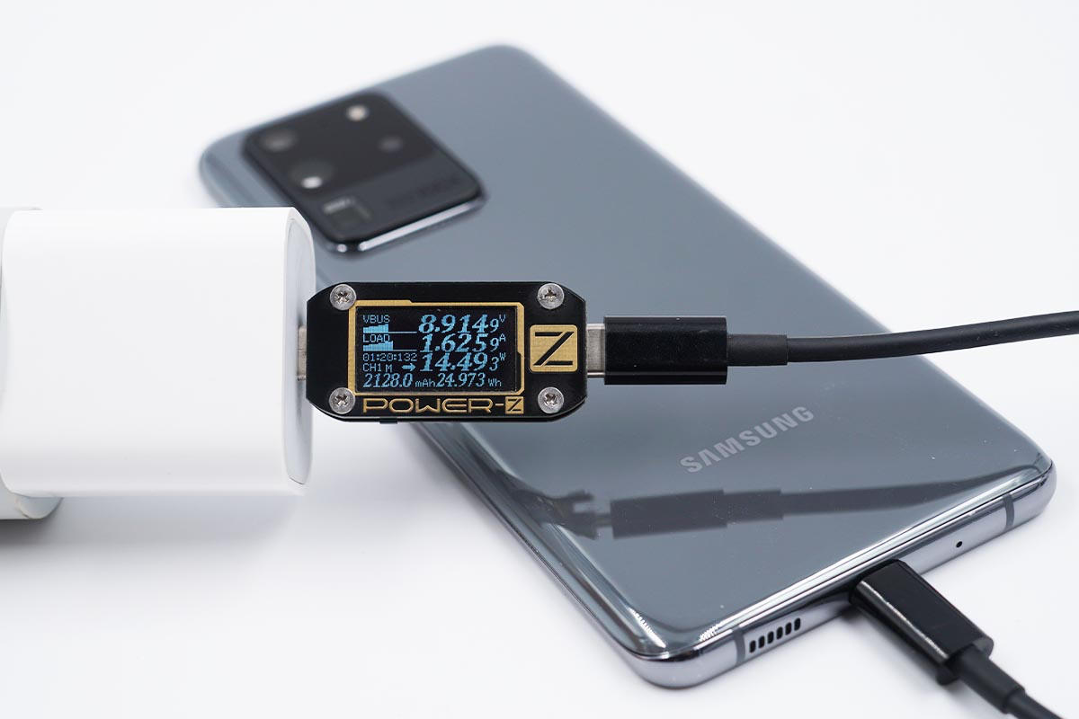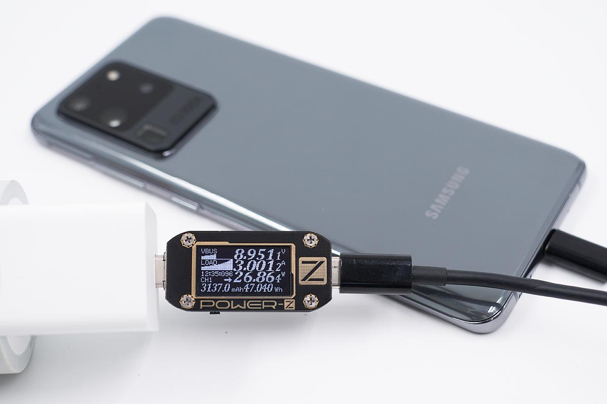 使用充電器為三星S20 Ultra充電,功率為8.95V 3.00A 26.86W。
