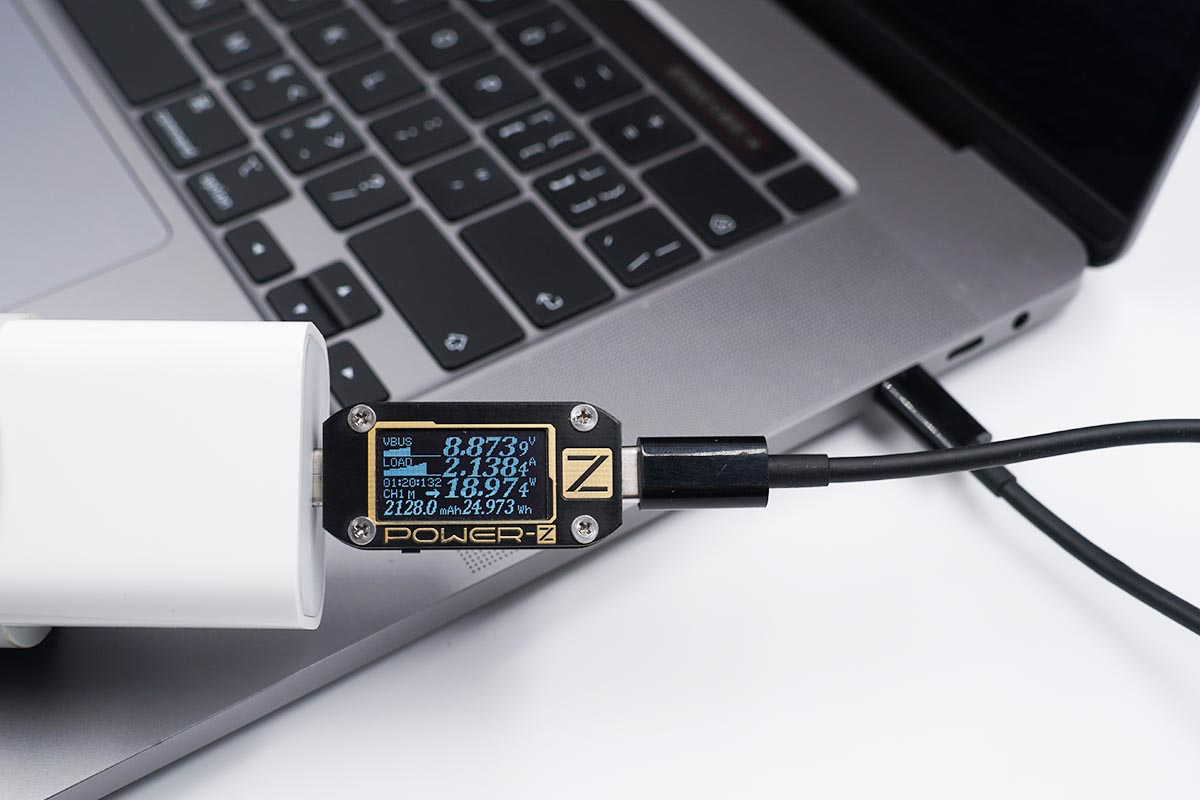 使用蘋果20W PD充電器為MacBook Pro充電,功率為8.87V 2.13A 18.97W。