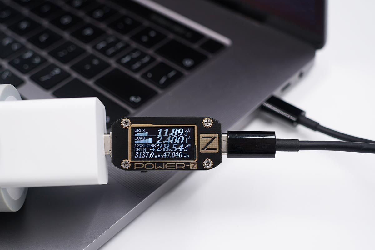 使用充電器為MacBook Pro充電,功率為11.89V 2.40A 28.54W。