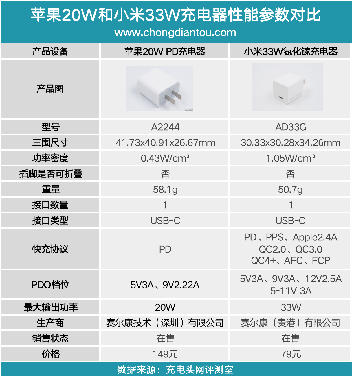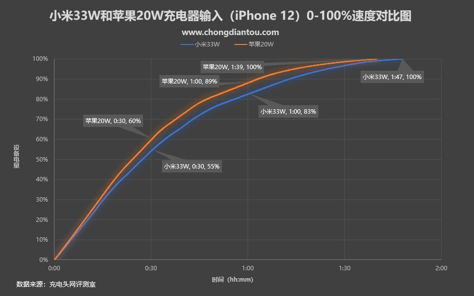 關注充電頭網和關注快充的朋友相信都知道小米作為“最好的蘋果充電配件廠商”在快充的布局上已經形成了不錯的規模,而此次最新推出的33W氮化鎵充電器不僅可以為iPhone 12快充,而且價格還比蘋果20W充電器便宜很多。借此契機,我們就來聊一下價格相差一倍的兩款充電器在性能上有何區別。