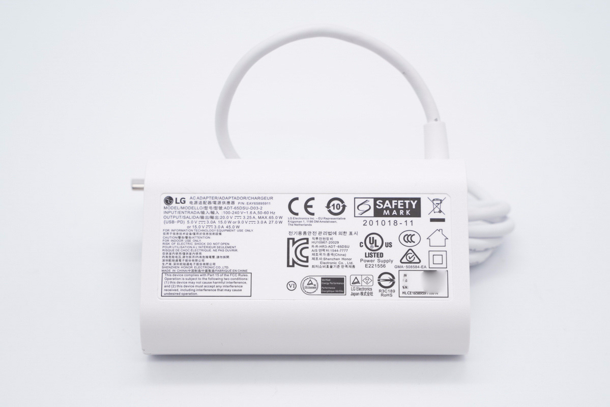 一、LG gram筆電標配65W氮化鎵充電器外觀