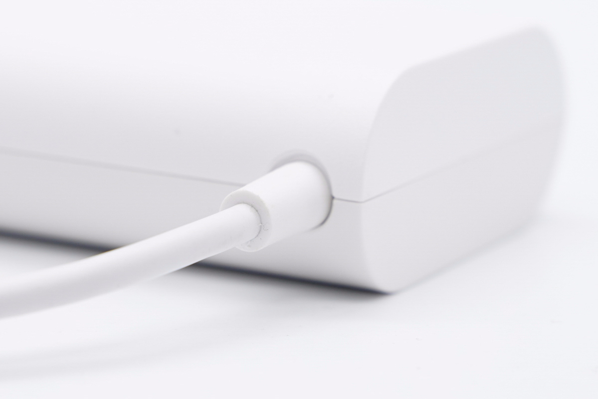LG這款65W氮化鎵充電器采用標準筆記本電源適配器風格設計,自帶USB-C輸出線纜,機身表面磨砂處理,兩側為邊緣弧面。