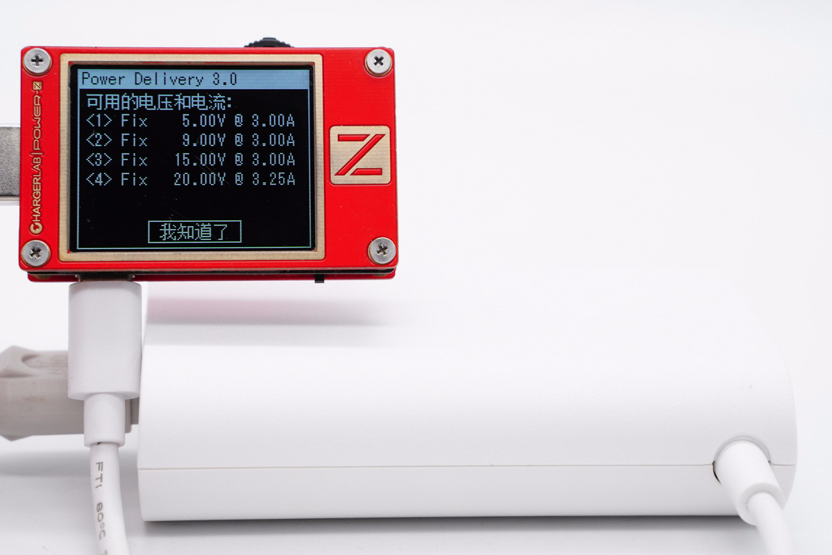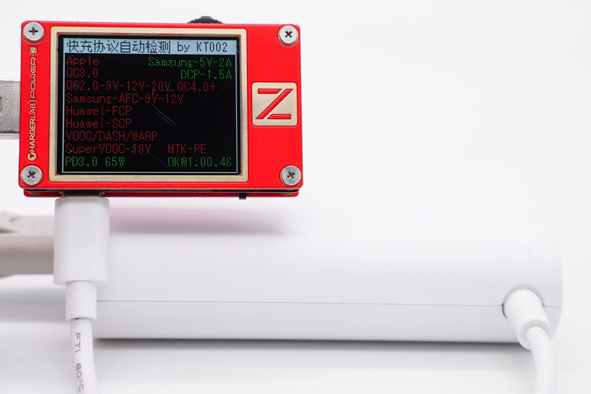 使用ChargerLAB POWER-Z KT002測得充電器僅支持PD3.0快充協議。
