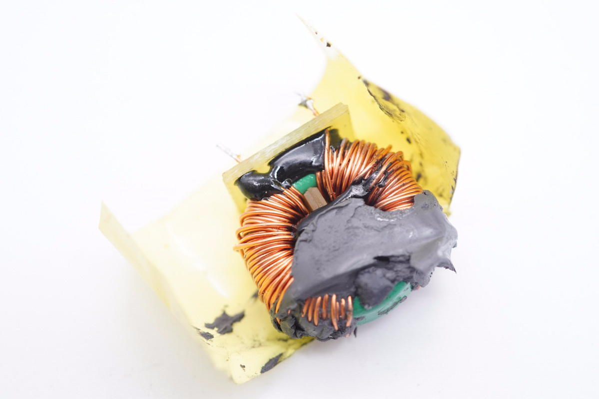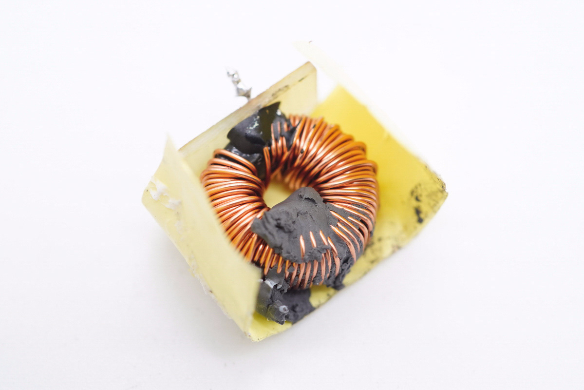 另一顆共模電感特寫,使用絕緣膠帶包裹。