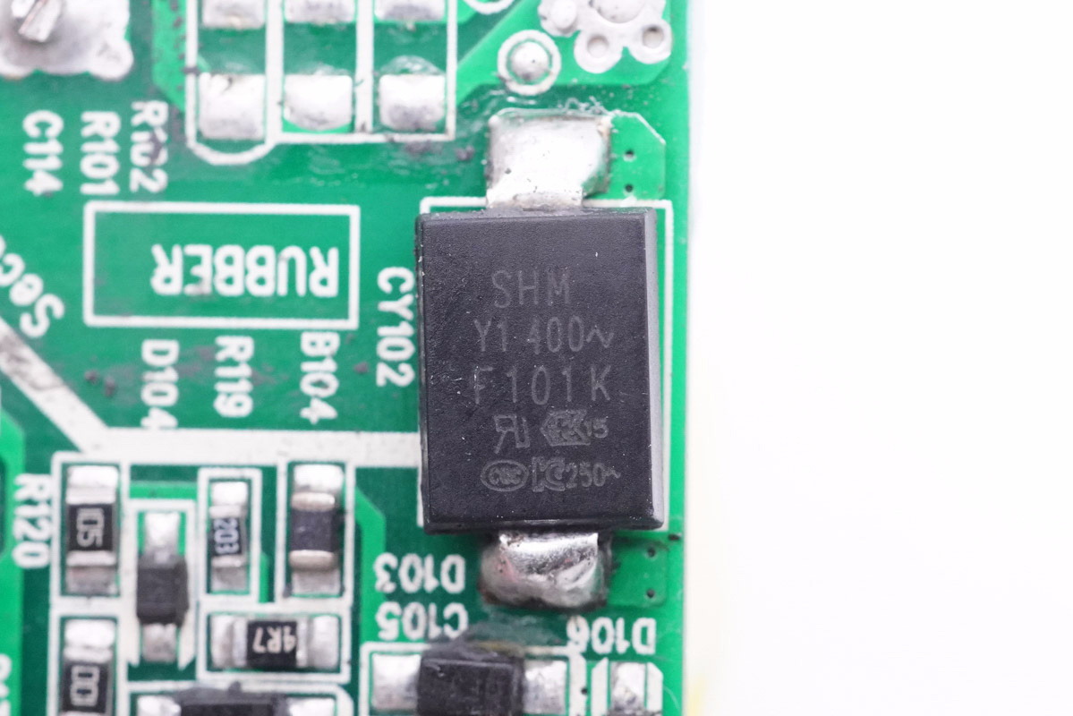 PCB板另一側設有Y電容、主控芯片供電電容以及變壓器。